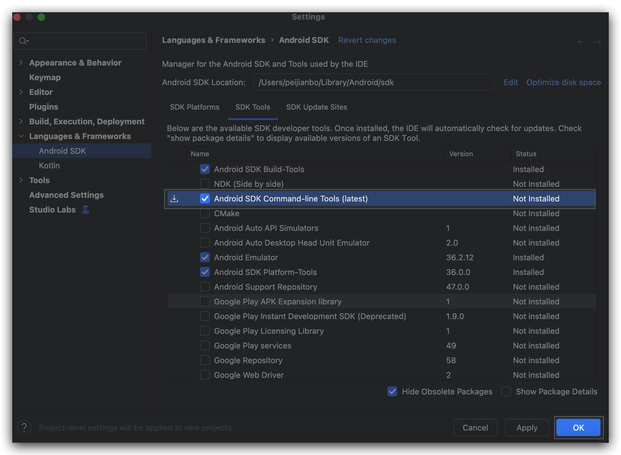 SDK Tools下的Android SDK Command-line Tools(latest),然后点击OK