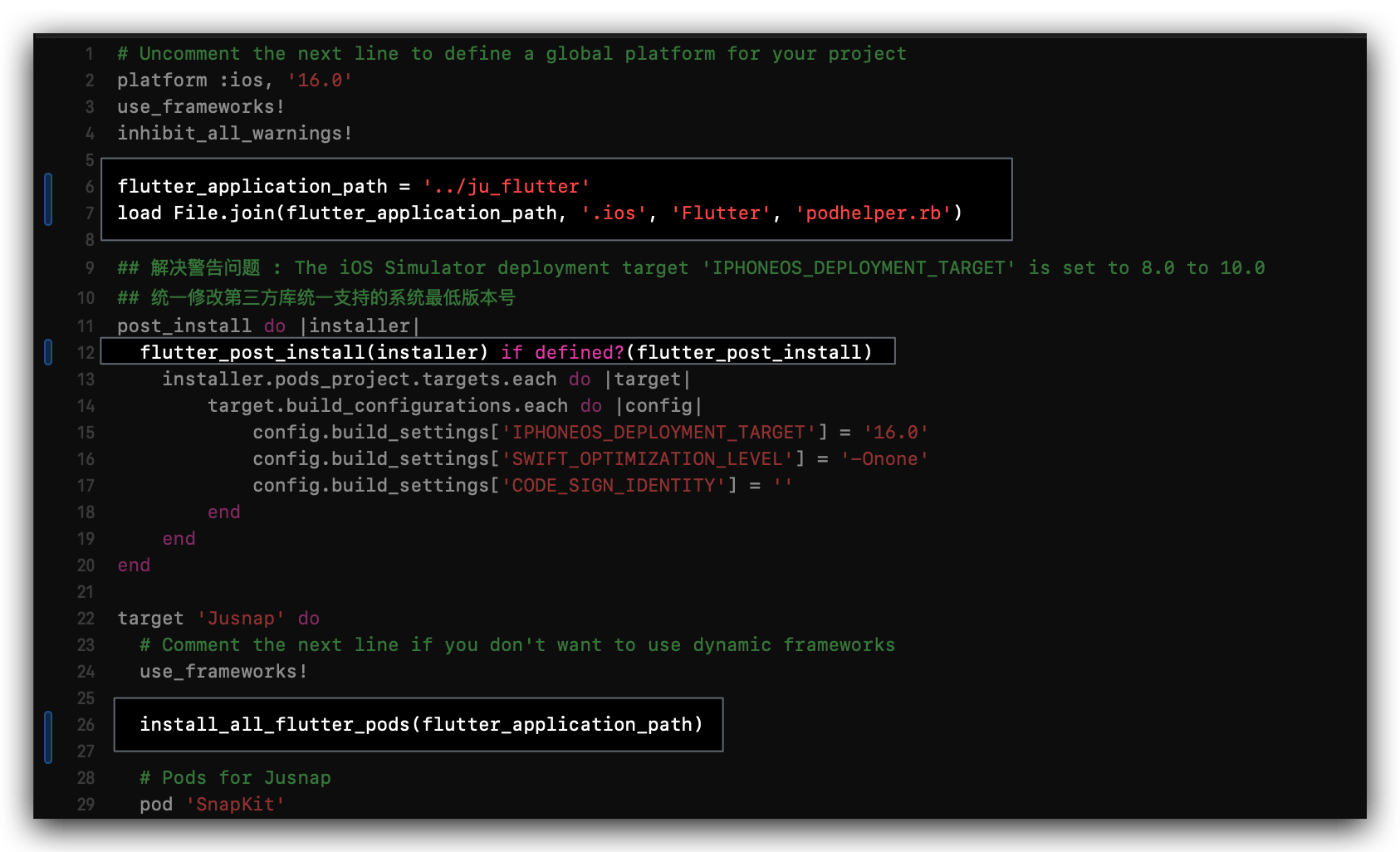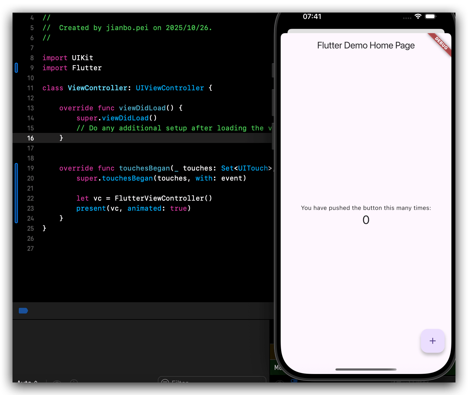 去 Flutter中文网 将 Flutter module 集成到 iOS 项目 再对照教程及搜索: